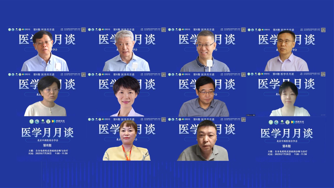 2025年7月26日,由北京中西醫結合學會舉辦的《醫學月月談(第8期)——自身免疫性皮膚病的診斷與治療》于線下(北京)線上同步舉行。本次論壇由北京中西醫結合學會腎臟病專業委員會主任委員、北京中西醫結合腎臟疑難病會診中心主任、北京大學航天中心醫院腎內科主任醫師特聘教授、解放軍總醫院及南開大學醫學院博士生導師謝院生教授擔任大會主席,解放軍總醫院李承新教授擔任大會執行主席,北京醫院常建民教授、中國醫學科學院北京協和醫院左亞剛教授、解放軍總醫院王文娟教授作為講課嘉賓,中國醫科大學附屬盛京醫院吳嚴教授、空軍軍醫大學空軍特色醫學中心蔡宏教授、中國中醫科學院廣安門醫院崔炳南教授、西安交通大學第一附屬醫院鄭焱教授、陸軍軍醫大學新橋醫院王儒鵬教授作為本次大會的討論嘉賓。